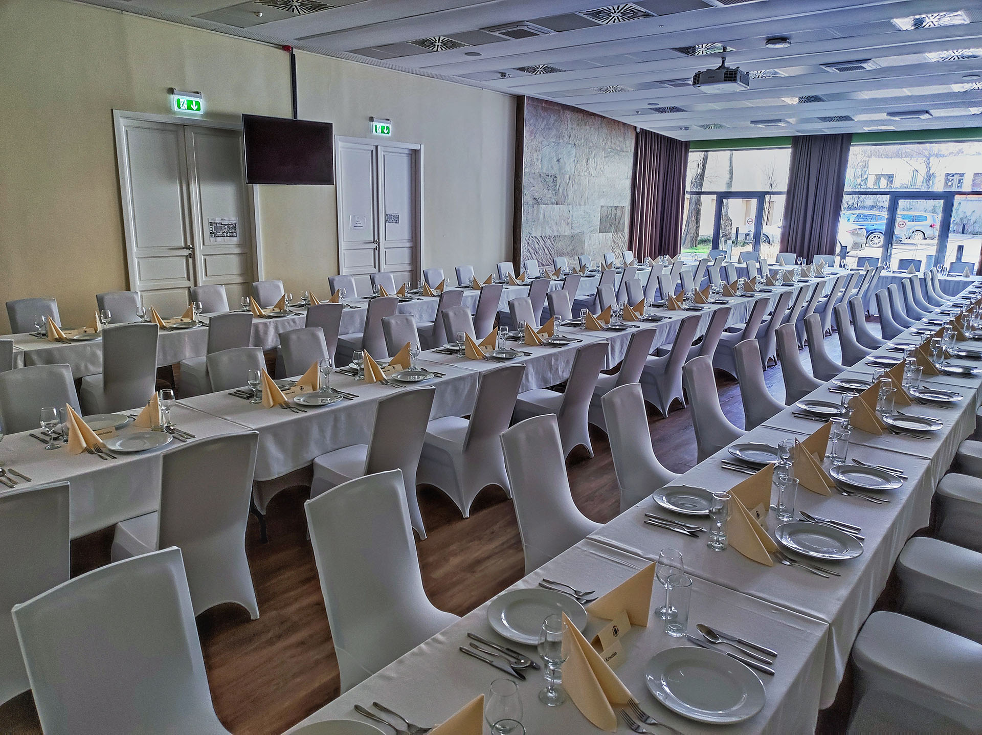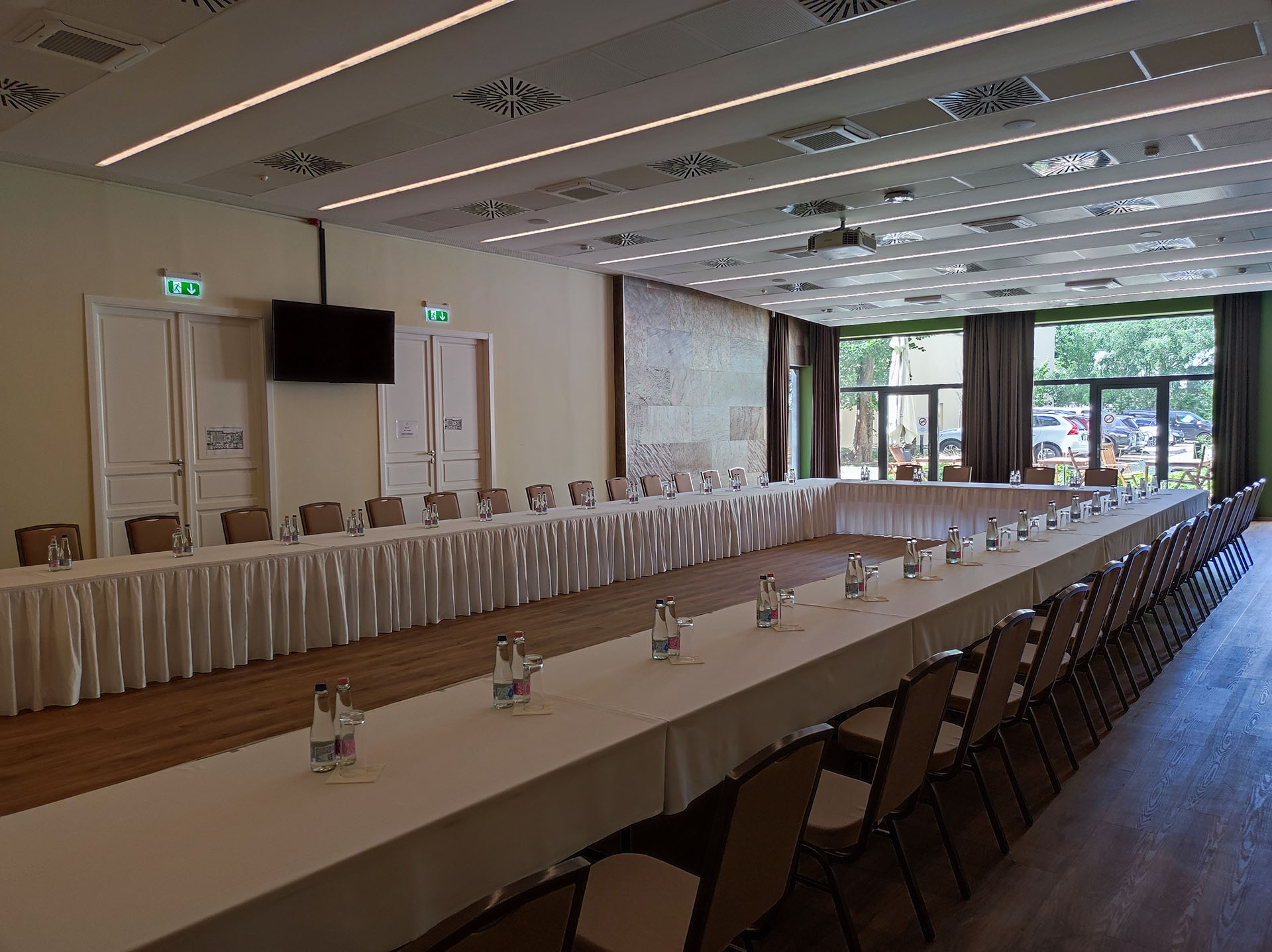 The cosy 65 m2 D50 Café adjacent to the Esztergom Hall is equipped with a bar, bar stools, coffee tables and, if required, cocktail tables and it is a pleasant place for casual conversation or to serve drinks from the bar during an event.